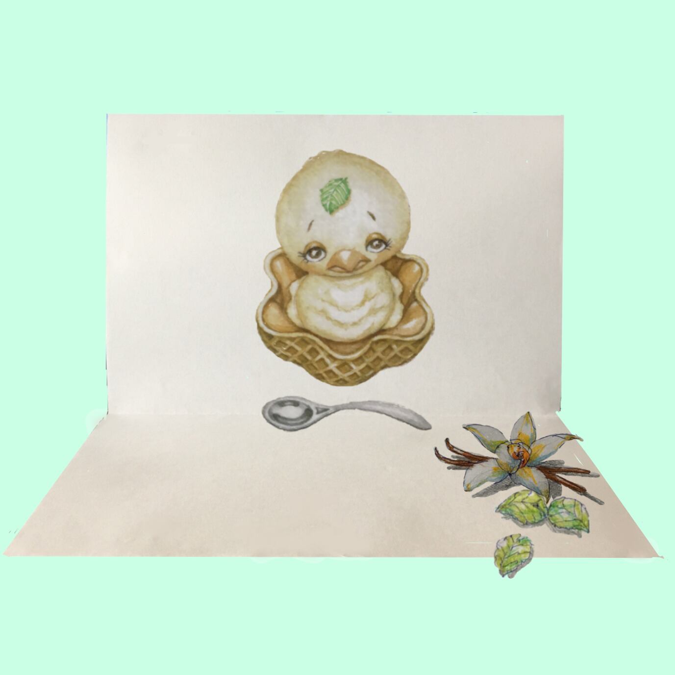 ひよこフレーバー: ヒヨコがモデル。イメージカラーはホワイト。味付けはバニラとミントリーフ。